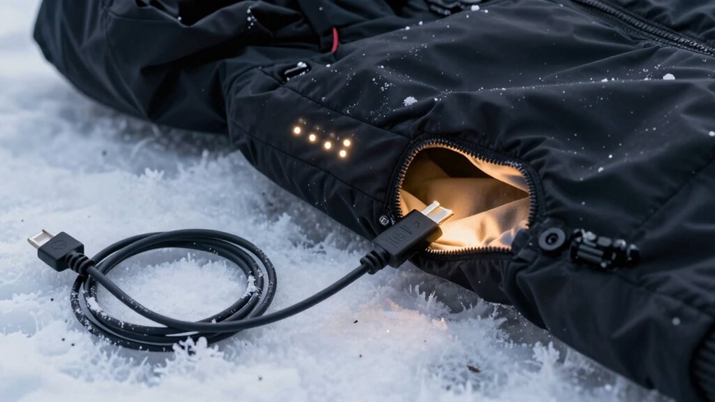 If your heated gear isn’t working properly, look for signs of incorrect charging, like inconsistent heating or sudden power loss. These issues often stem from battery compatibility problems or faulty charging indicators. You might notice the gear doesn’t turn on, or the indicators don’t show proper charge levels. Always make sure you’re using compatible batteries and check the charging indicators regularly to prevent power issues and keep your gear functioning at its best.